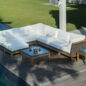 Azores strikes the perfect balance between transitional and modern design. Angular planes of hand woven fiber are supported by a sturdy base of solid teak hardwood. The sectional is deep and comfortable; the four individual sectional units may be ordered independently in any combination to customize your configuration. All frames are constructed from all-weather wicker fiber that has been wrapped around an aluminum frame, and the finest Grade A teak wood.